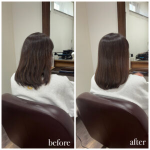 新潟店のカラーエステの施術実績 カラーエステで潤いを dearsniigata 2026年1月31日 こちらのお客様はカラーや日々のアイロンによる毛先のパサつきやダメージで絡まり、まとまりがないというのがお悩みでした😭 今回の髪の毛の悩みは薬剤の選定ミス、 髪の毛の乾燥が重なって起きていました。 そこでディアーズでは優しい薬剤を使用して やさしい施術をさせて頂きました❣ 髪の毛に栄養をたくさん入れたり、 保湿をしっかりすることで まとまりのあるサラサラ髪になりました✨ お客様からは 「まとまりもでて嬉しいです💓」 と喜んで頂けました!