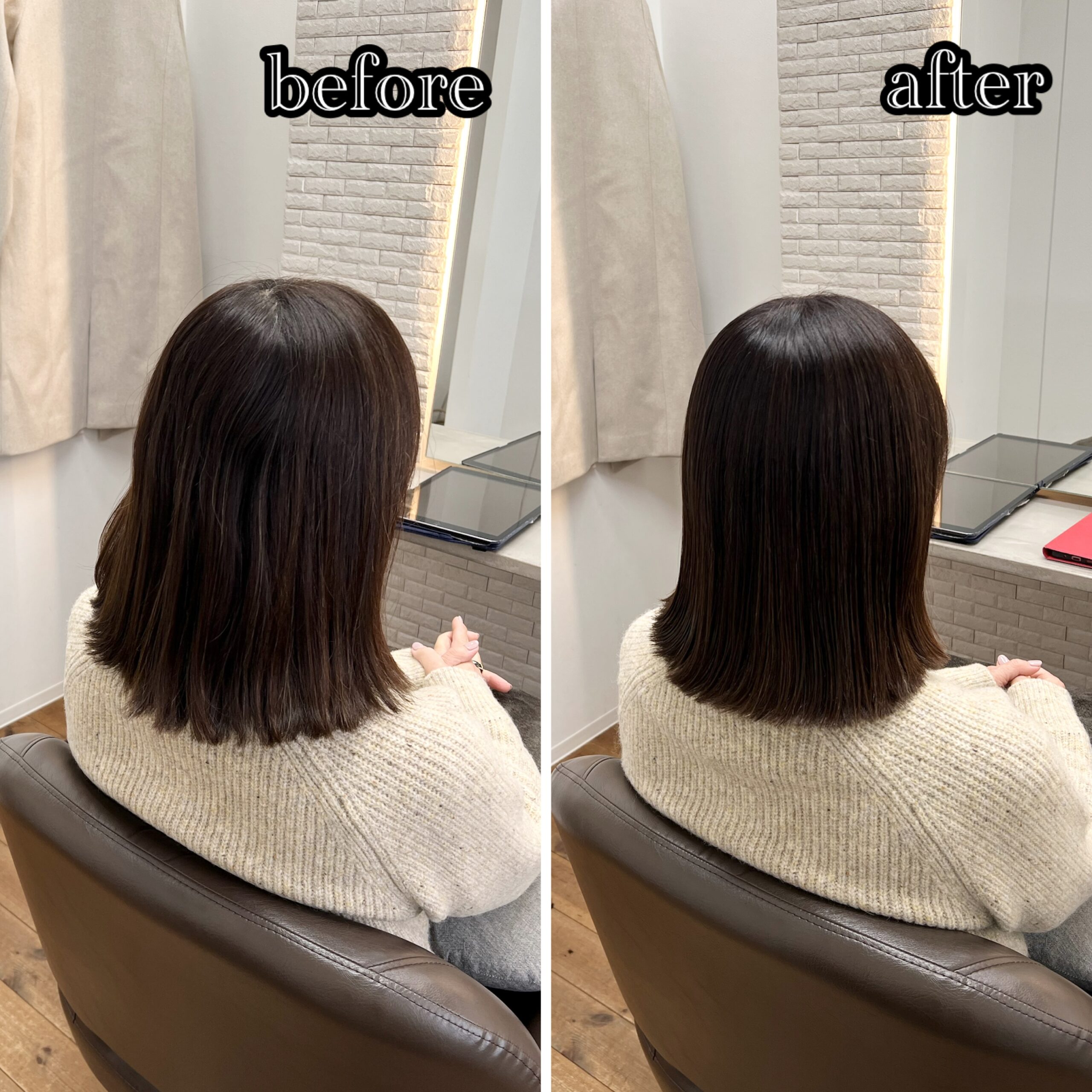 新潟店のブログ カラーエステでツヤツヤに! dearsniigata 2026年1月31日 こちらのお客様はカラーや 縮毛矯正を繰り返し、 毛先のパサつきやダメージ まとまりがないというのがお悩みでした。 今回の髪の毛の悩みは薬剤の選定ミス、髪の毛の乾燥が重なって起きていました。 そこでディアーズでは優しい薬剤を使用して やさしい施術をさせて頂きました。 髪の毛に栄養をたくさん入れたり、 保湿をしっかりすることで まとまりのあるツヤ髪になりました。 お客様からは 「まとまりが出て嬉しいです」 と喜んで頂けました!