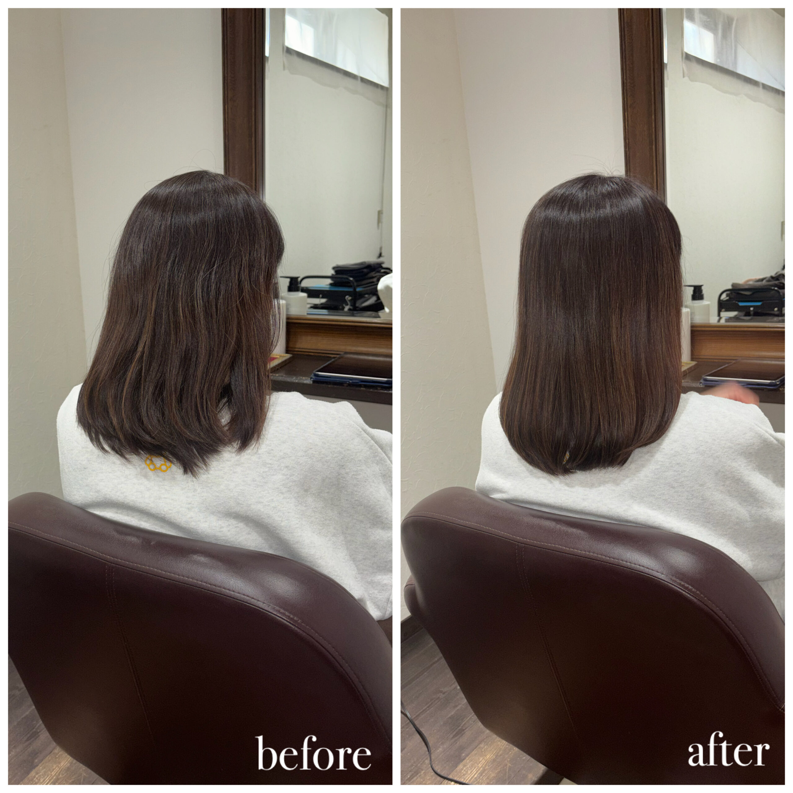 新潟店のカラーエステの施術実績 カラーエステでツヤ髪に dearsniigata 2026年2月7日 こちらのお客様はカラーや日々のアイロンによる毛先のパサつきやダメージで絡まり、まとまりがないというのがお悩みでした😭 今回の髪の毛の悩みは薬剤の選定ミス、 髪の毛の乾燥が重なって起きていました。 そこでディアーズでは優しい薬剤を使用して やさしい施術をさせて頂きました❣ 髪の毛に栄養をたくさん入れたり、 保湿をしっかりすることで まとまりのあるサラサラ髪になりました✨ お客様からは 「まとまりもでて嬉しいです💓」 と喜んで頂けました!