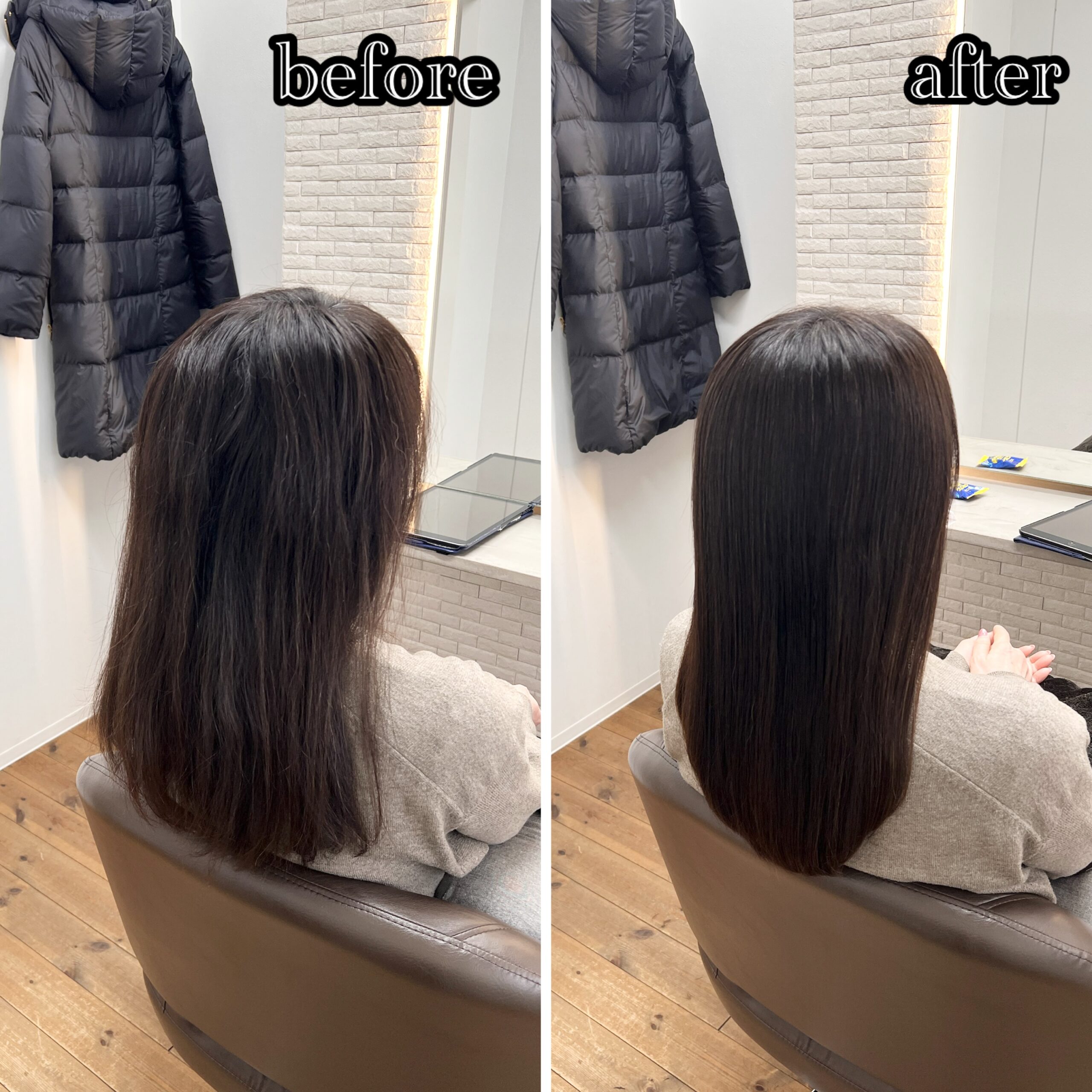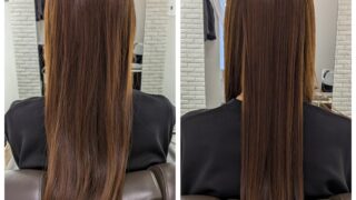 新潟店のブログ ストレートエステでサラサラに! dearsniigata 2026年2月18日 こちらのお客様はカラーや 縮毛矯正を繰り返し、 毛先のパサつきやダメージ まとまりがないというのがお悩みでした。 今回の髪の毛の悩みは薬剤の選定ミス、髪の毛の乾燥が重なって起きていました。 そこでディアーズでは優しい薬剤を使用して やさしい施術をさせて頂きました。 髪の毛に栄養をたくさん入れたり、 保湿をしっかりすることで まとまりのあるツヤ髪になりました。 お客様からは 「まとまりが出て嬉しいです」 と喜んで頂けました!