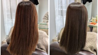 新潟店のブログ カラーエステでツヤ髪になりました dearsniigata 2026年2月19日 こちらのお客様はカラーや 縮毛矯正を繰り返し、 毛先のパサつきやダメージ まとまりがないというのがお悩みでした。 今回の髪の毛の悩みは薬剤の選定ミス、髪の毛の乾燥が重なって起きていました。 そこでディアーズでは優しい薬剤を使用して やさしい施術をさせて頂きました。 髪の毛に栄養をたくさん入れたり、 保湿をしっかりすることで まとまりのあるツヤ髪になりました。 お客様からは 「まとまりが出て嬉しいです」 と喜んで頂けました!