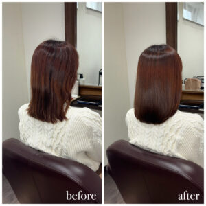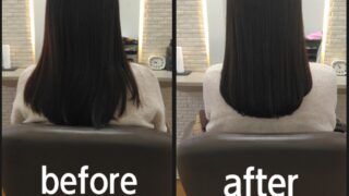 新潟店のストレートエステの施術実績 ストレートエステでまとまりを dearsniigata 2026年2月21日 こちらのお客様はカラーや日々のアイロンによる毛先のパサつきやダメージで絡まり、まとまりがないというのがお悩みでした😭 今回の髪の毛の悩みは薬剤の選定ミス、 髪の毛の乾燥が重なって起きていました。 そこでディアーズでは優しい薬剤を使用して やさしい施術をさせて頂きました❣ 髪の毛に栄養をたくさん入れたり、 保湿をしっかりすることで まとまりのあるサラサラ髪になりました✨ お客様からは 「まとまりもでて嬉しいです💓」 と喜んで頂けました!