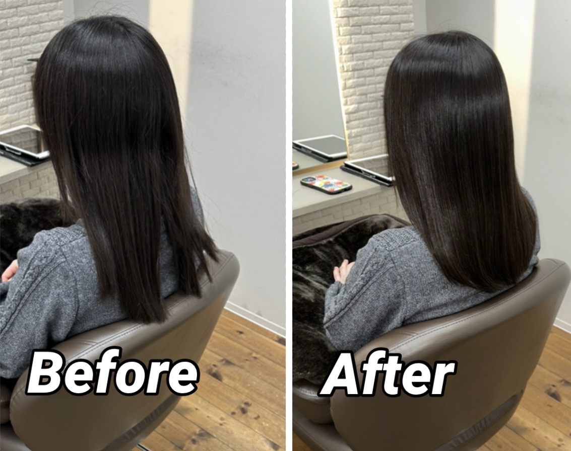 【ストレートエステでツヤ髪になりました】 こちらのお客様は日々アイロンを繰り返し、毛先のパサつきやダメージ、