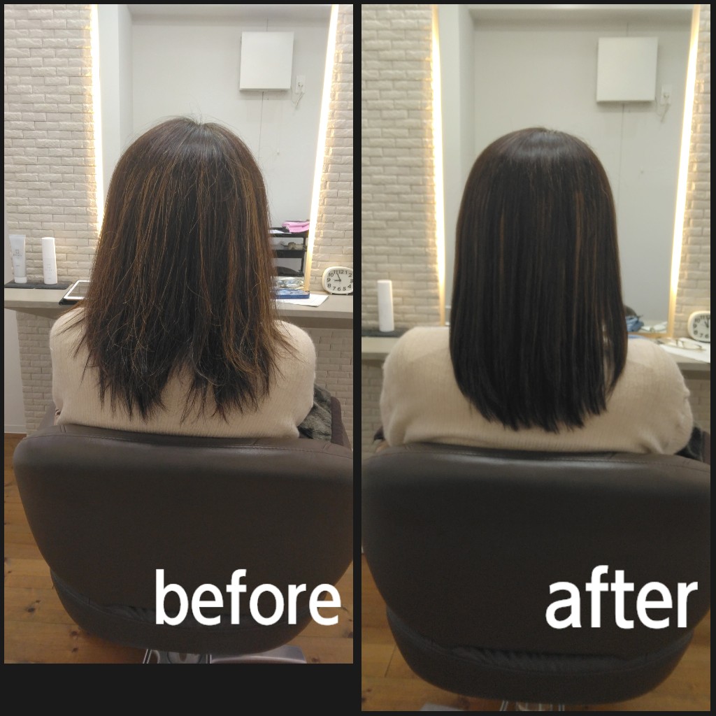新潟店のブログ カラーエステでツヤツヤになりました dearsniigata 2026年3月3日 こちらのお客様はカラーや 縮毛矯正を繰り返し、 毛先のパサつきやダメージ まとまりがないというのがお悩みでした。 今回の髪の毛の悩みは薬剤の選定ミス、髪の毛の乾燥が重なって起きていました。 そこでディアーズでは優しい薬剤を使用して やさしい施術をさせて頂きました。 髪の毛に栄養をたくさん入れたり、 保湿をしっかりすることで まとまりのあるツヤ髪になりました。 お客様からは 「まとまりが出て嬉しいです」 と喜んで頂けました!