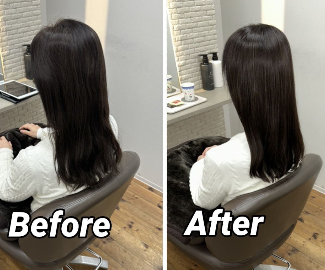 【ストレートエステでツヤ髪になりました】 こちらのお客様は日々アイロンを繰り返し、毛先のパサつきやダメージ、