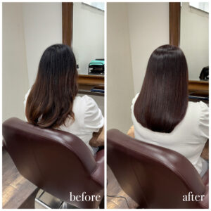 新潟店のカラーエステの施術実績 カラーエステでツヤツヤに dearsniigata 2026年3月14日 こちらのお客様はカラーや日々のアイロンによる毛先のパサつきやダメージで絡まり、まとまりがないというのがお悩みでした😭 今回の髪の毛の悩みは薬剤の選定ミス、 髪の毛の乾燥が重なって起きていました。 そこでディアーズでは優しい薬剤を使用して やさしい施術をさせて頂きました❣ 髪の毛に栄養をたくさん入れたり、 保湿をしっかりすることで まとまりのあるサラサラ髪になりました✨ お客様からは 「まとまりもでて嬉しいです💓」 と喜んで頂けました!