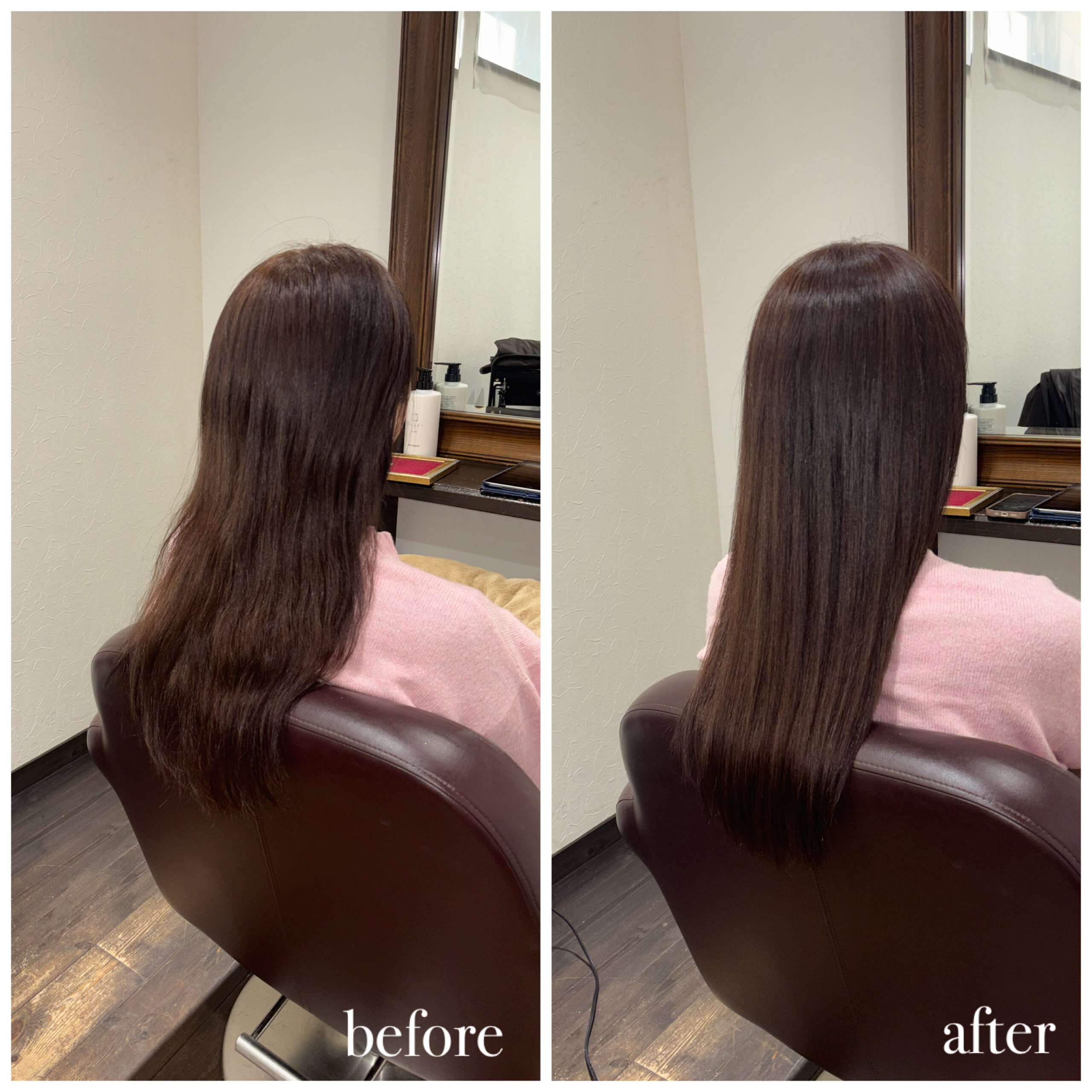 新潟店のカラーエステの施術実績 カラーエステでツヤツヤに dearsniigata 2026年3月28日 こちらのお客様はカラーや日々のアイロンによる毛先のパサつきやダメージで絡まり、まとまりがないというのがお悩みでした😭 今回の髪の毛の悩みは薬剤の選定ミス、 髪の毛の乾燥が重なって起きていました。 そこでディアーズでは優しい薬剤を使用して やさしい施術をさせて頂きました❣ 髪の毛に栄養をたくさん入れたり、 保湿をしっかりすることで まとまりのあるサラサラ髪になりました✨ お客様からは 「まとまりもでて嬉しいです💓」 と喜んで頂けました!