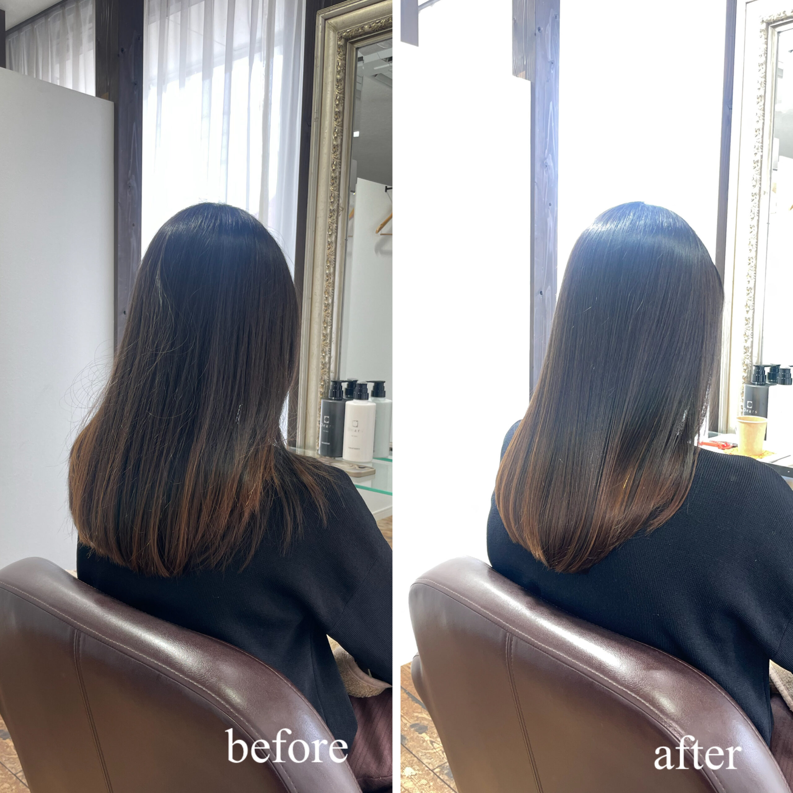 新潟店のブログ トリートメントエステで艶々に dearsniigata 2026年3月31日 こちらのお客様は毛先のパサつきやダメージで絡まり、まとまりがないというのがお悩みでした😭 今回の髪の毛の悩みは薬剤の選定ミス、 髪の毛の乾燥が重なって起きていました そこでディアーズでは優しい薬剤を使用して やさしい施術をさせて頂きました❣ 髪の毛に栄養をたくさん入れたり、 保湿をしっかりすることで まとまりのあるサラサラ髪になりました✨ お客様からは 「指通りが良くて嬉しいです✨」 と喜んで頂けました!