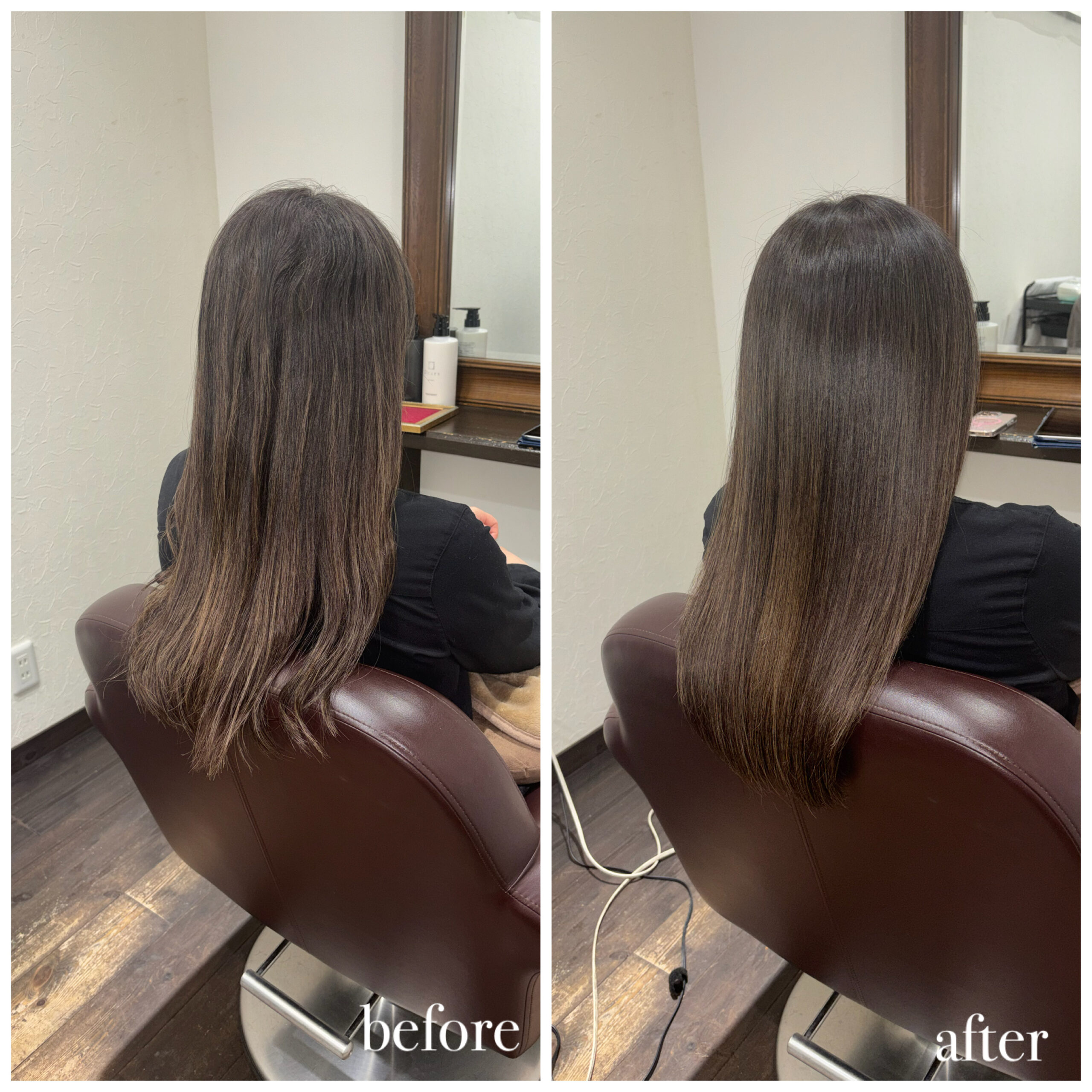 新潟店のカラーエステの施術実績 カラーエステでツヤツヤに dearsniigata 2026年4月4日 こちらのお客様はカラーや日々のアイロンによる毛先のパサつきやダメージで絡まり、まとまりがないというのがお悩みでした😭 今回の髪の毛の悩みは薬剤の選定ミス、 髪の毛の乾燥が重なって起きていました。 そこでディアーズでは優しい薬剤を使用して やさしい施術をさせて頂きました❣ 髪の毛に栄養をたくさん入れたり、 保湿をしっかりすることで まとまりのあるサラサラ髪になりました✨ お客様からは 「まとまりもでて嬉しいです💓」 と喜んで頂けました!