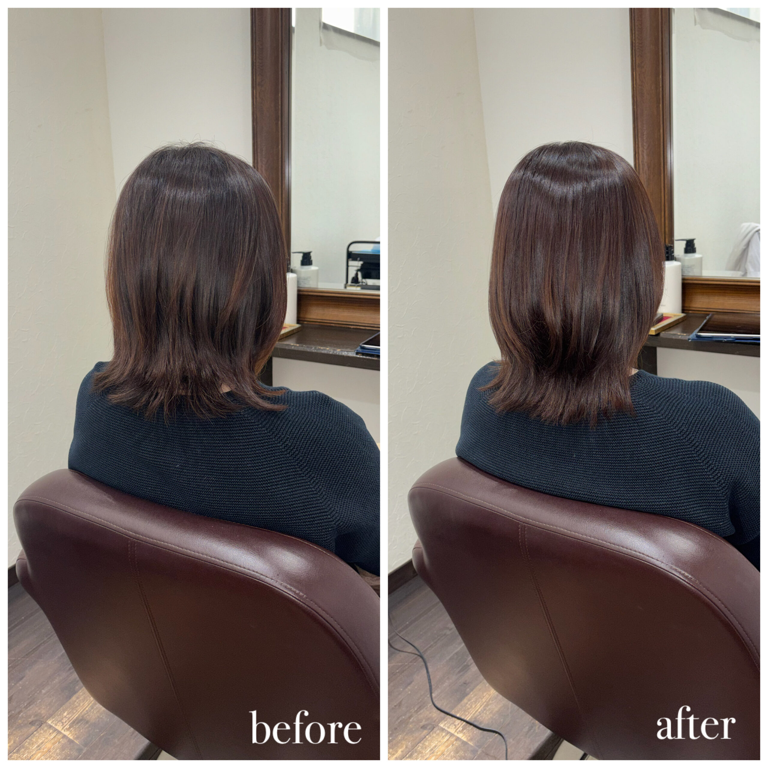 新潟店のストレートエステの施術実績 ストレートエステでまとまりを dearsniigata 2026年4月18日 こちらのお客様はカラーや日々のアイロンによる毛先のパサつきやダメージで絡まり、まとまりがないというのがお悩みでした😭 今回の髪の毛の悩みは薬剤の選定ミス、 髪の毛の乾燥が重なって起きていました。 そこでディアーズでは優しい薬剤を使用して やさしい施術をさせて頂きました❣ 髪の毛に栄養をたくさん入れたり、 保湿をしっかりすることで まとまりのあるサラサラ髪になりました✨ お客様からは 「まとまりもでて嬉しいです💓」 と喜んで頂けました!