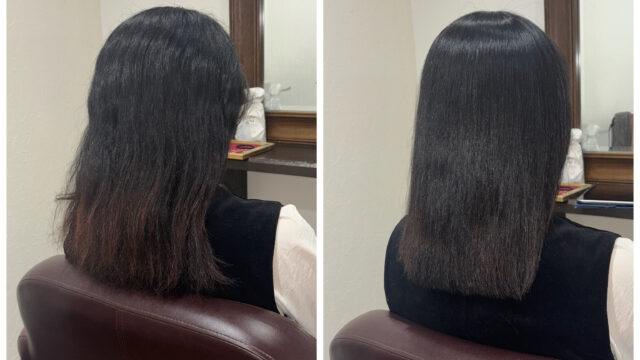 新潟店のストレートエステの施術実績 髪の量が多くボリュームが出やすい髪がストレートエステでまとまりのあるツヤ髪になりました dearsniigata 2019年10月4日 2020.01.17 こちらのお客様はホームカラーや 縮毛矯正を繰り返し、 毛先のパサつきやダメージ、 まとまりがないというのがお悩みでした。 今回の髪の毛の悩みは薬剤の選定ミス、髪の毛の乾燥が重なって起きていました。 そこでディアーズでは優しい薬剤を使用して やさしい施術をさせて頂きました。 髪の毛に栄養をたくさん入れたり、 保湿をしっかりすることで まとまりのあるツヤ髪になりました。 お客様からは 「まとまりとツヤが出て嬉しいです」 と喜んで頂けました!