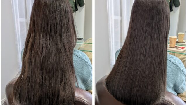 新潟店のトリートメントエステの施術実績 トリートメントエステで潤いました♪ dearsniigata 2023年4月3日 こちらのお客様は毛先のパサつきやダメージで絡まり、まとまりがないというのがお悩みでした😭 今回の髪の毛の悩みは薬剤の選定ミス、 髪の毛の乾燥が重なって起きていました そこでディアーズでは優しい薬剤を使用して やさしい施術をさせて頂きました❣ 髪の毛に栄養をたくさん入れたり、 保湿をしっかりすることで まとまりのあるサラサラ髪になりました✨ お客様からは 「まとまりが違いますー🙌」 と喜んで頂けました!