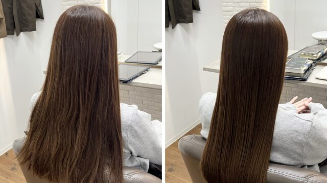 新潟店のブログ カラーエステで綺麗にまとまりました dearsniigata 2023年9月18日 こちらのお客様はカラーや日々のアイロンによる毛先のパサつきやダメージで絡まり、まとまりがないというのがお悩みでした😭 今回の髪の毛の悩みは薬剤の選定ミス、 髪の毛の乾燥が重なって起きていました そこでディアーズでは優しい薬剤を使用して やさしい施術をさせて頂きました❣ 髪の毛に栄養をたくさん入れたり、 保湿をしっかりすることで まとまりのあるサラサラ髪になりました✨ お客様からは 「ツヤもでて嬉しいです🙌」 と喜んで頂けました!