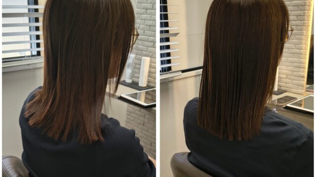 新潟店のブログ ストレートエステでまとまりある髪へ dearsniigata 2024年6月7日 こちらのお客様はカラーや 縮毛矯正を繰り返し、 毛先のパサつきやダメージ まとまりがないというのがお悩みでした。 今回の髪の毛の悩みは薬剤の選定ミス、髪の毛の乾燥が重なって起きていました。 そこでディアーズでは優しい薬剤を使用して やさしい施術をさせて頂きました。 髪の毛に栄養をたくさん入れたり、 保湿をしっかりすることで まとまりのあるツヤ髪になりました。 お客様からは 「まとまりが出て嬉しいです」 と喜んで頂けました!