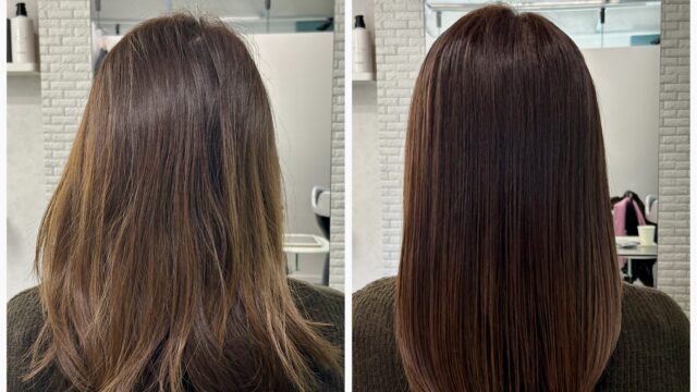 新潟店のブログ カラーエステでツヤツヤになりました dearsniigata 2025年4月29日 こちらのお客様は 毛先のパサつきやダメージで絡まり、 まとまりがないというのがお悩みでした😭 今回の髪の毛の悩みは薬剤の選定ミス、 髪の毛の乾燥が重なって起きていました そこでディアーズでは優しい薬剤を使用して やさしい施術をさせて頂きました❣ 髪の毛に栄養をたくさん入れたり、 保湿をしっかりすることで まとまりのあるサラサラ髪になりました✨ お客様からは 「ツヤツヤになって嬉しいです❣️」 と喜んで頂けました!