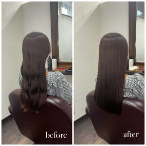 新潟店のカラーエステの施術実績 カラーエステでツヤ髪に dearsniigata 2025年10月1日 こちらのお客様はカラーや日々のアイロンによる毛先のパサつきやダメージで絡まり、まとまりがないというのがお悩みでした😭 今回の髪の毛の悩みは薬剤の選定ミス、 髪の毛の乾燥が重なって起きていました。 そこでディアーズでは優しい薬剤を使用して やさしい施術をさせて頂きました❣ 髪の毛に栄養をたくさん入れたり、 保湿をしっかりすることで まとまりのあるサラサラ髪になりました✨ お客様からは 「まとまりもでて嬉しいです💓」 と喜んで頂けました!