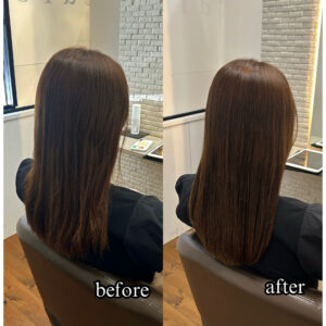 万代店のストレートエステの施術実績 ストレートエステでまとまる髪に dearsniigata 2025年10月2日 こちらのお客様はクセや日々のアイロンによる毛先のパサつきやダメージで絡まり、まとまりがないというのがお悩みでした😭 今回の髪の毛の悩みは薬剤の選定ミス、 髪の毛の乾燥が重なって起きていました。 そこでディアーズでは優しい薬剤を使用して やさしい施術をさせて頂きました❣ 髪の毛に栄養をたくさん入れたり、 保湿をしっかりすることで まとまりのあるサラサラ髪になりました✨ お客様からは 「まとまりもでて嬉しいです💓」 と喜んで頂けました!