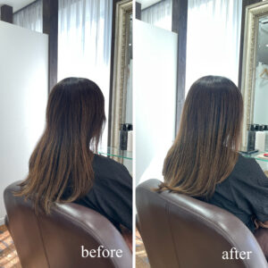 新潟店のブログ トリートメントエステでメンテナンスを♩ dearsniigata 2025年10月3日 こちらのお客様はカラーや縮毛矯正、日々のアイロンによる毛先のパサつきやダメージで絡まり、まとまりがないというのがお悩みでした😭 今回の髪の毛の悩みは薬剤の選定ミス、 髪の毛の乾燥が重なって起きていました そこでディアーズでは優しい薬剤を使用して やさしい施術をさせて頂きました❣ 髪の毛に栄養をたくさん入れたり、 保湿をしっかりすることで まとまりのあるサラサラ髪になりました✨ お客様からは 「まとまりが良くなり嬉しいです✨」 と喜んで頂けました!