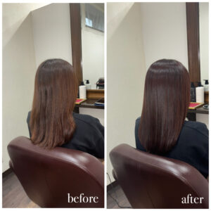 新潟店のカラーエステの施術実績 カラーエステでツヤツヤに dearsniigata 2025年10月15日 こちらのお客様はカラーや日々のアイロンによる毛先のパサつきやダメージで絡まり、まとまりがないというのがお悩みでした😭 今回の髪の毛の悩みは薬剤の選定ミス、 髪の毛の乾燥が重なって起きていました。 そこでディアーズでは優しい薬剤を使用して やさしい施術をさせて頂きました❣ 髪の毛に栄養をたくさん入れたり、 保湿をしっかりすることで まとまりのあるサラサラ髪になりました✨ お客様からは 「まとまりもでて嬉しいです💓」 と喜んで頂けました!
