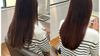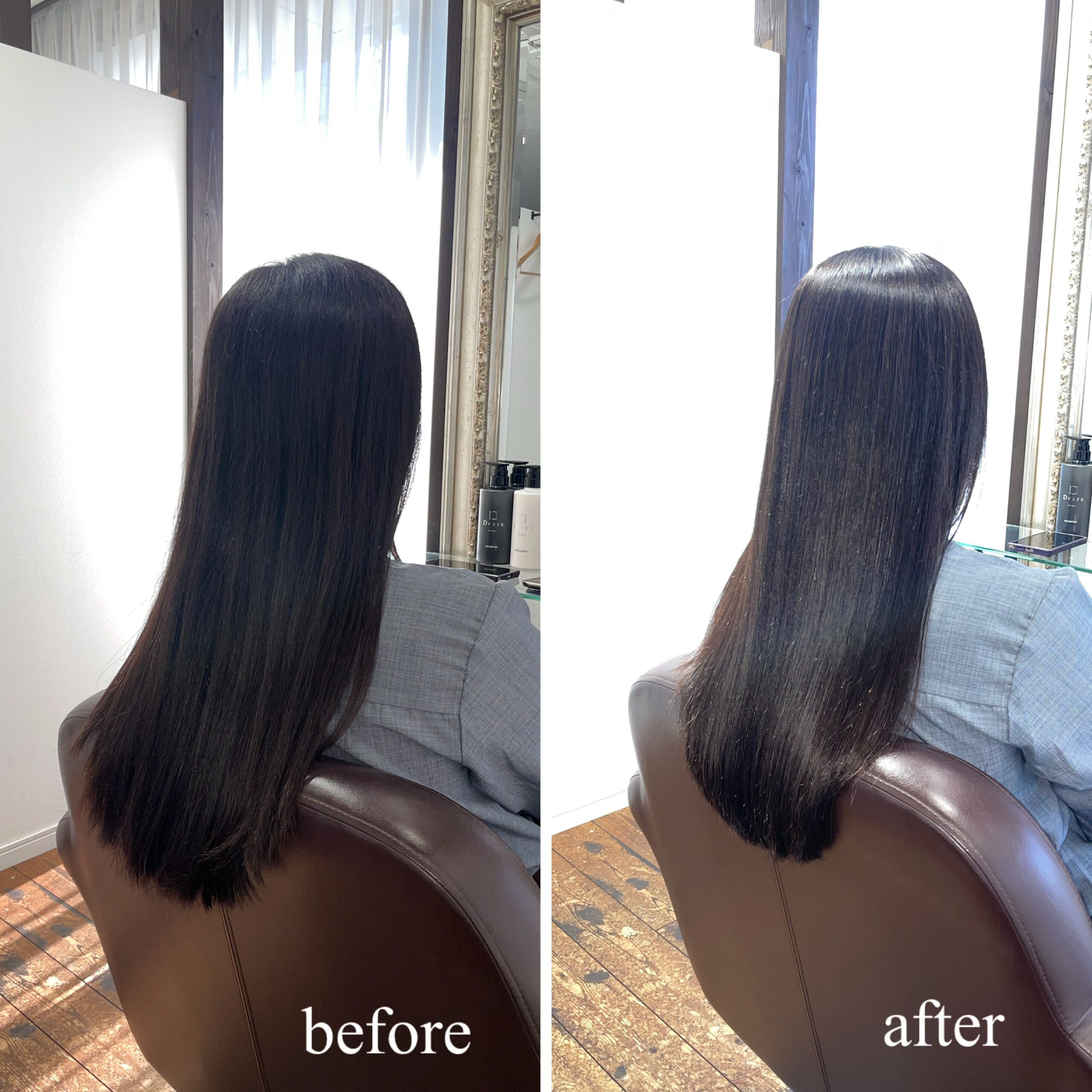 新潟店のブログ ストレートエステでチリつく髪が艶々に dearsniigata 2025年10月17日 こちらのお客様はカラーや縮毛矯正、日々のアイロンによる毛先のパサつきやダメージで絡まり、まとまりがないというのがお悩みでした😭 今回の髪の毛の悩みは薬剤の選定ミス、 髪の毛の乾燥が重なって起きていました そこでディアーズでは優しい薬剤を使用して やさしい施術をさせて頂きました❣ 髪の毛に栄養をたくさん入れたり、 保湿をしっかりすることで まとまりのあるサラサラ髪になりました✨ お客様からは 「指通りが良くて嬉しいです✨」 と喜んで頂けました!