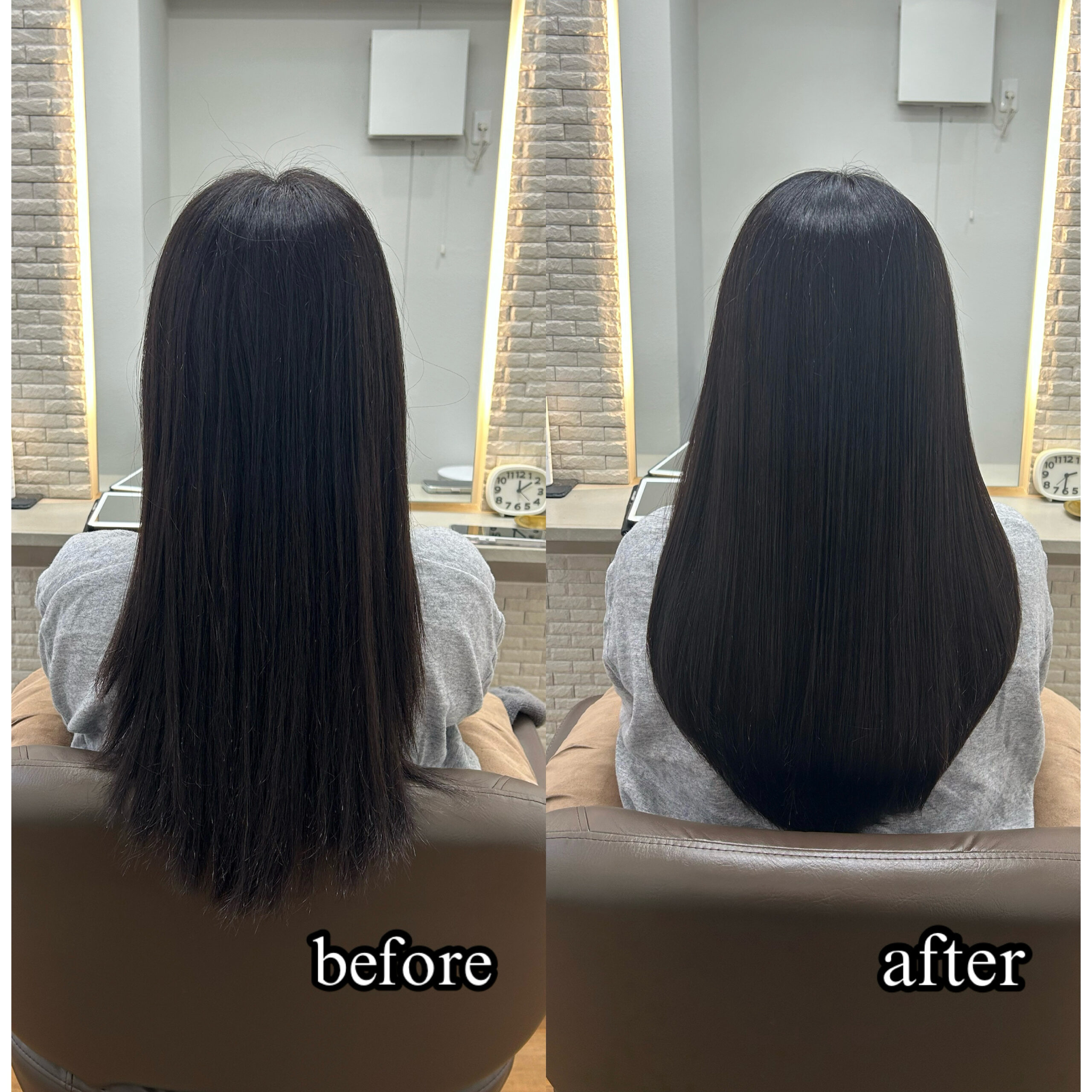 万代店のトリートメントエステの施術実績 トリートメントエステでまとまる髪に dearsniigata 2025年10月18日 こちらのお客様はクセや日々のアイロンによる毛先のパサつきやダメージで絡まり、まとまりがないというのがお悩みでした😭 今回の髪の毛の悩みは薬剤の選定ミス、 髪の毛の乾燥が重なって起きていました。 そこでディアーズでは優しい薬剤を使用して やさしい施術をさせて頂きました❣ 髪の毛に栄養をたくさん入れたり、 保湿をしっかりすることで まとまりのあるサラサラ髪になりました✨ お客様からは 「まとまりもでて嬉しいです💓」 と喜んで頂けました!