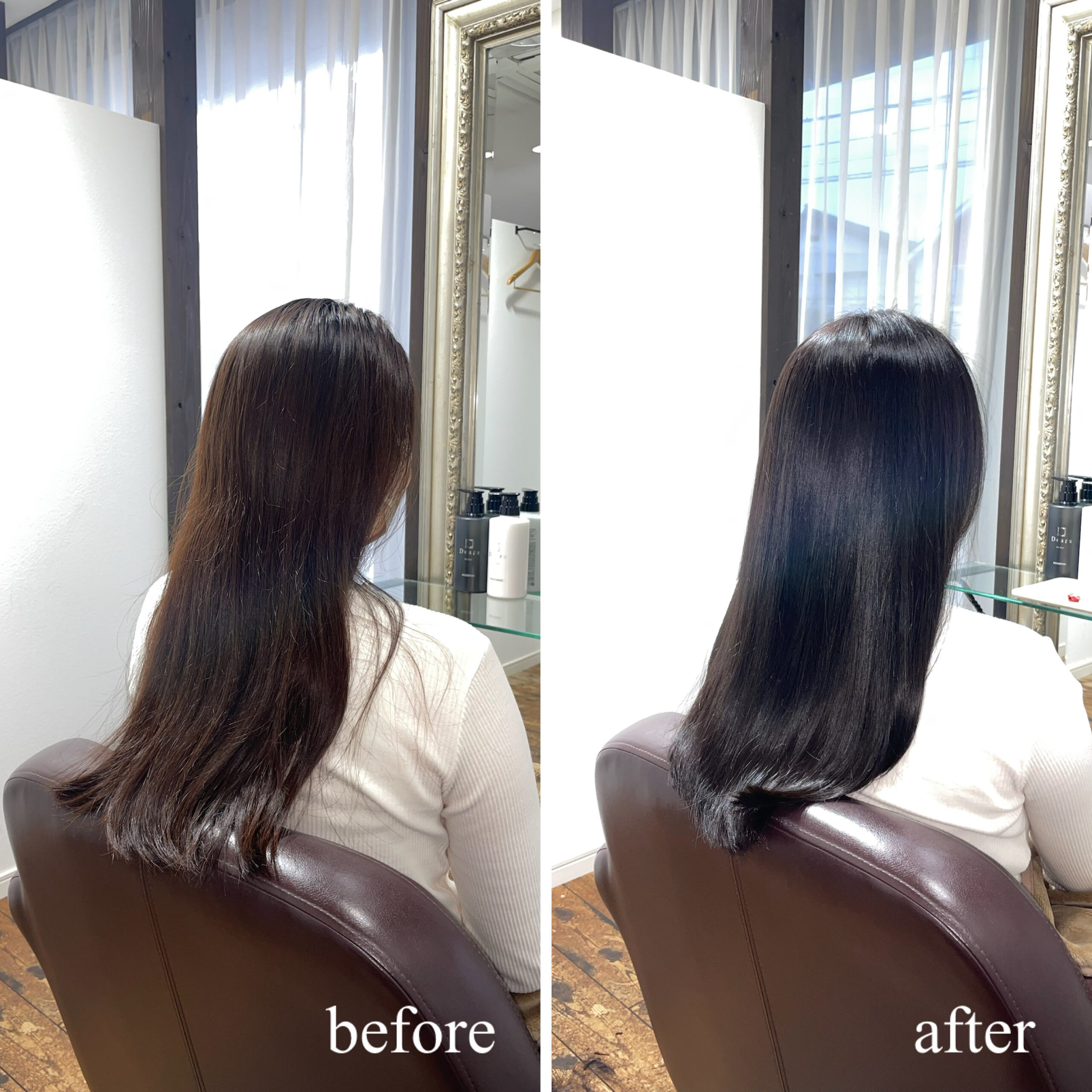新潟店のブログ カラーエステで乾燥しやすい髪が潤いました dearsniigata 2025年10月21日 こちらのお客様はカラーや縮毛矯正、日々のアイロンによる毛先のパサつきやダメージで絡まり、まとまりがないというのがお悩みでした😭 今回の髪の毛の悩みは薬剤の選定ミス、 髪の毛の乾燥が重なって起きていました そこでディアーズでは優しい薬剤を使用して やさしい施術をさせて頂きました❣ 髪の毛に栄養をたくさん入れたり、 保湿をしっかりすることで まとまりのあるサラサラ髪になりました✨ お客様からは 「指通りが良くて嬉しいです✨」 と喜んで頂けました!