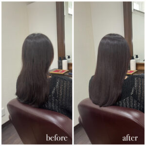 新潟店のカラーエステの施術実績 カラーエステでツヤツヤに dearsniigata 2025年10月25日 こちらのお客様はカラーや日々のアイロンによる毛先のパサつきやダメージで絡まり、まとまりがないというのがお悩みでした😭 今回の髪の毛の悩みは薬剤の選定ミス、 髪の毛の乾燥が重なって起きていました。 そこでディアーズでは優しい薬剤を使用して やさしい施術をさせて頂きました❣ 髪の毛に栄養をたくさん入れたり、 保湿をしっかりすることで まとまりのあるサラサラ髪になりました✨ お客様からは 「まとまりもでて嬉しいです💓」 と喜んで頂けました!