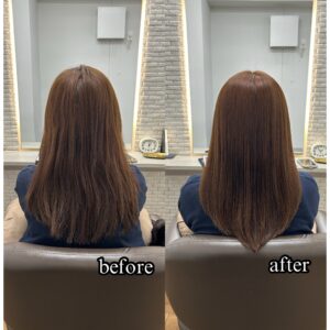 万代店のカラーエステの施術実績 カラーエステで艶髪へ dearsniigata 2025年11月5日 こちらのお客様はクセや日々のアイロンによる毛先のパサつきやダメージで絡まり、まとまりがないというのがお悩みでした😭 今回の髪の毛の悩みは薬剤の選定ミス、 髪の毛の乾燥が重なって起きていました。 そこでディアーズでは優しい薬剤を使用して やさしい施術をさせて頂きました❣ 髪の毛に栄養をたくさん入れたり、 保湿をしっかりすることで まとまりのあるサラサラ髪になりました✨ お客様からは 「まとまりもでて嬉しいです💓」 と喜んで頂けました!