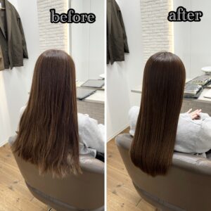 新潟店のブログ ストレートエステで艶髪! dearsniigata 2025年11月8日 こちらのお客様はカラーや 縮毛矯正を繰り返し、 毛先のパサつきやダメージ まとまりがないというのがお悩みでした。 今回の髪の毛の悩みは薬剤の選定ミス、髪の毛の乾燥が重なって起きていました。 そこでディアーズでは優しい薬剤を使用して やさしい施術をさせて頂きました。 髪の毛に栄養をたくさん入れたり、 保湿をしっかりすることで まとまりのあるツヤ髪になりました。 お客様からは 「まとまりが出て嬉しいです」 と喜んで頂けました!