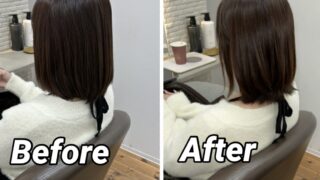 新潟店のブログ トリートメントエステで潤いました dearsniigata 2025年11月11日 こちらのお客様はカラーや縮毛矯正、日々のアイロンによる毛先のパサつきやダメージで絡まり、まとまりがないというのがお悩みでした😭 今回の髪の毛の悩みは薬剤の選定ミス、 髪の毛の乾燥が重なって起きていました そこでディアーズでは優しい薬剤を使用して やさしい施術をさせて頂きました❣ 髪の毛に栄養をたくさん入れたり、 保湿をしっかりすることで まとまりのあるサラサラ髪になりました✨ お客様からは 「指通りが良くて嬉しいです✨」 と喜んで頂けました!