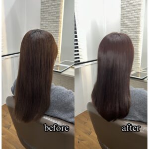 万代店のカラーエステの施術実績 カラーエステで艶々に dearsniigata 2025年11月15日 こちらのお客様はクセや日々のアイロンによる毛先のパサつきやダメージで絡まり、まとまりがないというのがお悩みでした😭 今回の髪の毛の悩みは薬剤の選定ミス、 髪の毛の乾燥が重なって起きていました。 そこでディアーズでは優しい薬剤を使用して やさしい施術をさせて頂きました❣ 髪の毛に栄養をたくさん入れたり、 保湿をしっかりすることで まとまりのあるサラサラ髪になりました✨ お客様からは 「まとまりもでて嬉しいです💓」 と喜んで頂けました!