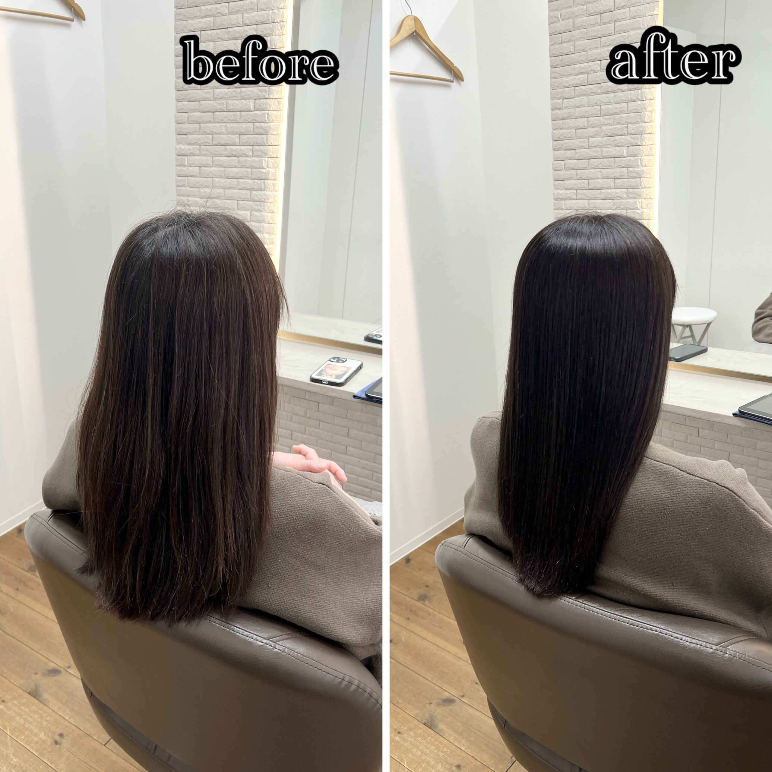 新潟店のブログ カラーエステでしっとりツヤツヤ dearsniigata 2025年11月19日 こちらのお客様はカラーや 縮毛矯正を繰り返し、 毛先のパサつきやダメージ まとまりがないというのがお悩みでした。 今回の髪の毛の悩みは薬剤の選定ミス、髪の毛の乾燥が重なって起きていました。 そこでディアーズでは優しい薬剤を使用して やさしい施術をさせて頂きました。 髪の毛に栄養をたくさん入れたり、 保湿をしっかりすることで まとまりのあるツヤ髪になりました。 お客様からは 「まとまりが出て嬉しいです」 と喜んで頂けました!