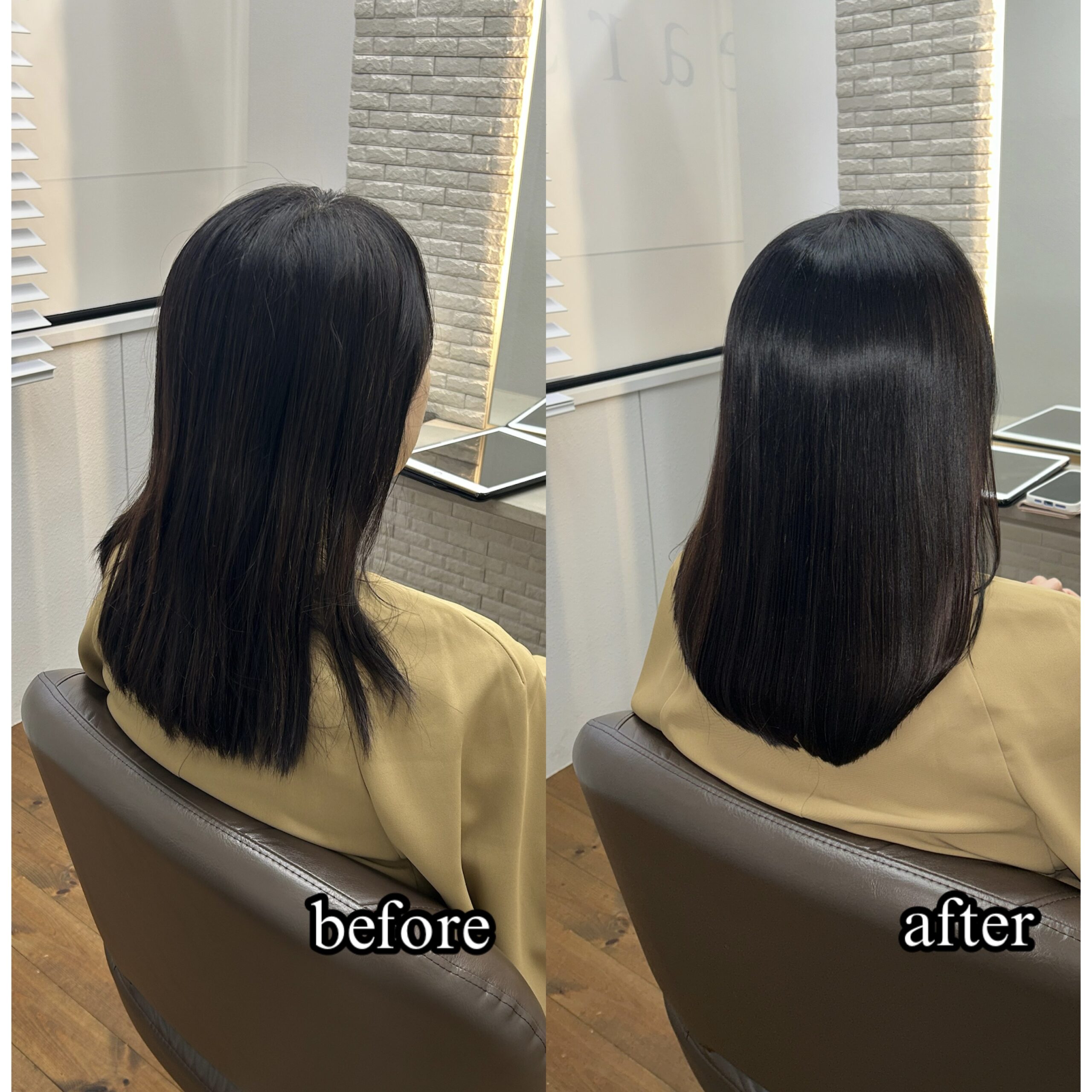 万代店のトリートメントエステの施術実績 トリートメントエステで艶やかに dearsniigata 2025年11月20日 こちらのお客様はクセや日々のアイロンによる毛先のパサつきやダメージで絡まり、まとまりがないというのがお悩みでした😭 今回の髪の毛の悩みは薬剤の選定ミス、 髪の毛の乾燥が重なって起きていました。 そこでディアーズでは優しい薬剤を使用して やさしい施術をさせて頂きました❣ 髪の毛に栄養をたくさん入れたり、 保湿をしっかりすることで まとまりのあるサラサラ髪になりました✨ お客様からは 「まとまりもでて嬉しいです💓」 と喜んで頂けました!