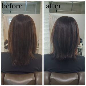 新潟店のブログ カラーエステで艶々になりました♪ dearsniigata 2025年11月25日 こちらのお客様は毛先のパサつきやダメージで絡まり、まとまりがないというのがお悩みでした😭 今回の髪の毛の悩みはの選定ミス、 髪の毛の乾燥が重なって起きていました そこでディアーズでは優しい薬剤を使用して やさしい施術をさせて頂きました❣ 髪の毛に栄養をたくさん入れたり、 保湿をしっかりすることで まとまりのあるサラサラ髪になりました✨ お客様からは 「艶々で軽く々でなって嬉しいです❣️」 と喜んで頂けました!