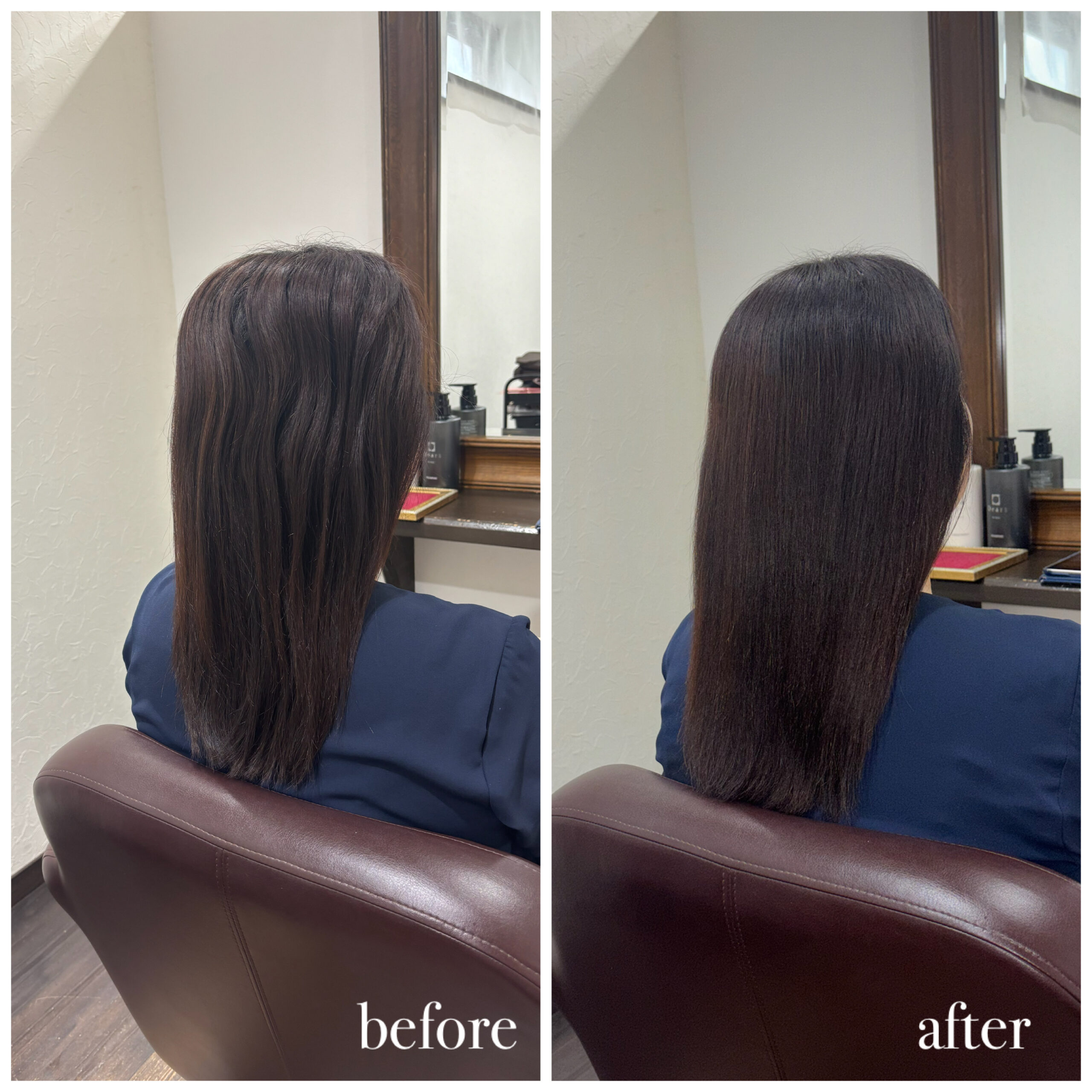新潟店のカラーエステの施術実績 カラーエステでツヤ髪に dearsniigata 2025年11月26日 こちらのお客様はカラーや日々のアイロンによる毛先のパサつきやダメージで絡まり、まとまりがないというのがお悩みでした😭 今回の髪の毛の悩みは薬剤の選定ミス、 髪の毛の乾燥が重なって起きていました。 そこでディアーズでは優しい薬剤を使用して やさしい施術をさせて頂きました❣ 髪の毛に栄養をたくさん入れたり、 保湿をしっかりすることで まとまりのあるサラサラ髪になりました✨ お客様からは 「まとまりもでて嬉しいです💓」 と喜んで頂けました!