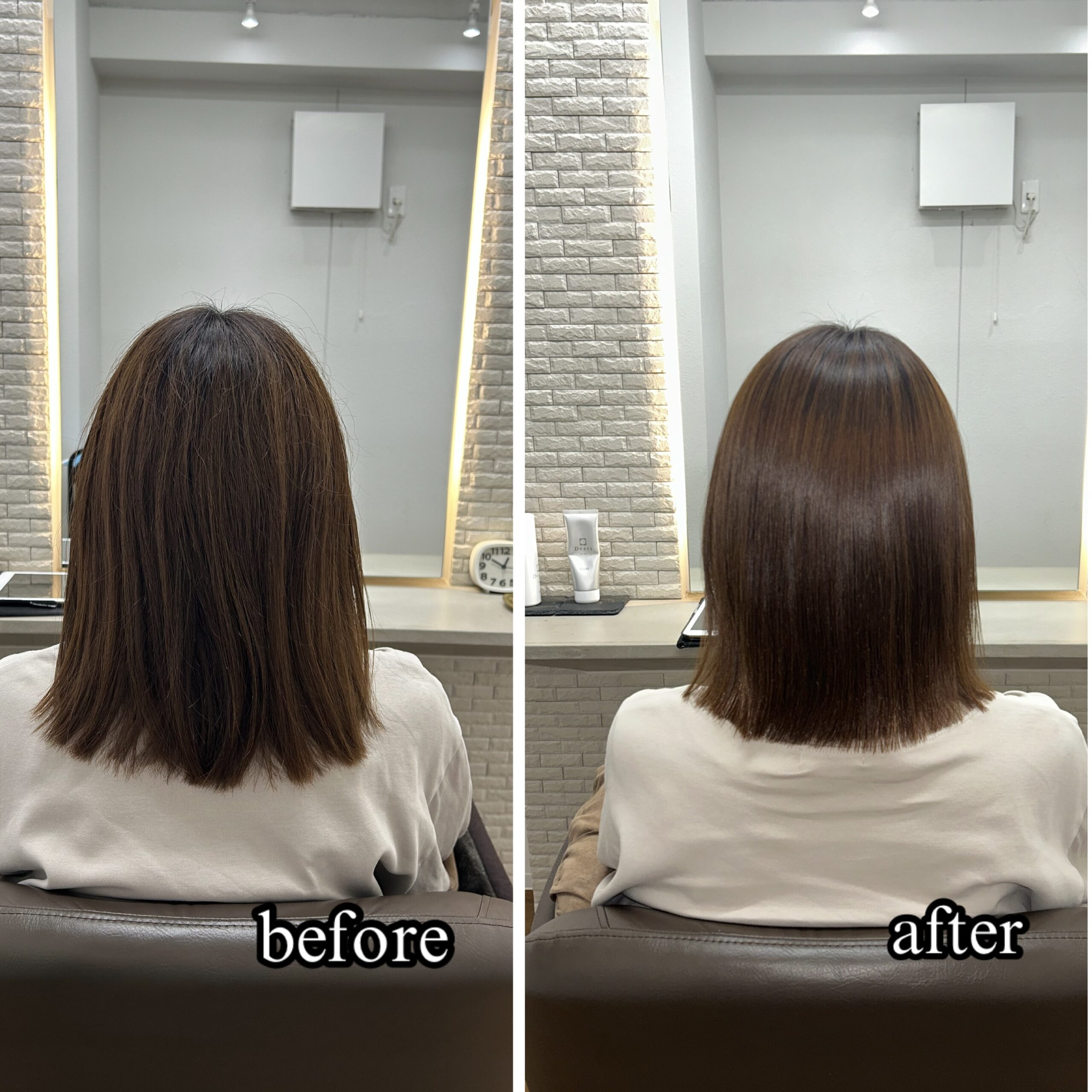 万代店のストレートエステの施術実績 ストレートエステで艶髪に dearsniigata 2025年11月28日 こちらのお客様はクセや日々のアイロンによる毛先のパサつきやダメージで絡まり、まとまりがないというのがお悩みでした😭 今回の髪の毛の悩みは薬剤の選定ミス、 髪の毛の乾燥が重なって起きていました。 そこでディアーズでは優しい薬剤を使用して やさしい施術をさせて頂きました❣ 髪の毛に栄養をたくさん入れたり、 保湿をしっかりすることで まとまりのあるサラサラ髪になりました✨ お客様からは 「まとまりもでて嬉しいです💓」 と喜んで頂けました!