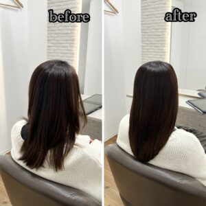 万代店のストレートエステの施術実績 ストレートエステでツヤツヤに! dearsniigata 2025年11月29日 こちらのお客様はカラーや 縮毛矯正を繰り返し、 毛先のパサつきやダメージ まとまりがないというのがお悩みでした。 今回の髪の毛の悩みは薬剤の選定ミス、髪の毛の乾燥が重なって起きていました。 そこでディアーズでは優しい薬剤を使用して やさしい施術をさせて頂きました。 髪の毛に栄養をたくさん入れたり、 保湿をしっかりすることで まとまりのあるツヤ髪になりました。 お客様からは 「まとまりが出て嬉しいです」 と喜んで頂けました!