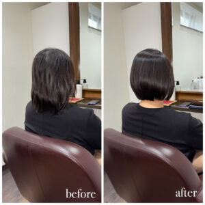 新潟店のストレートエステの施術実績 ストレートエステでまとまりを dearsniigata 2025年12月10日 こちらのお客様はカラーや日々のアイロンによる毛先のパサつきやダメージで絡まり、まとまりがないというのがお悩みでした😭 今回の髪の毛の悩みは薬剤の選定ミス、 髪の毛の乾燥が重なって起きていました。 そこでディアーズでは優しい薬剤を使用して やさしい施術をさせて頂きました❣ 髪の毛に栄養をたくさん入れたり、 保湿をしっかりすることで まとまりのあるサラサラ髪になりました✨ お客様からは 「まとまりもでて嬉しいです💓」 と喜んで頂けました!