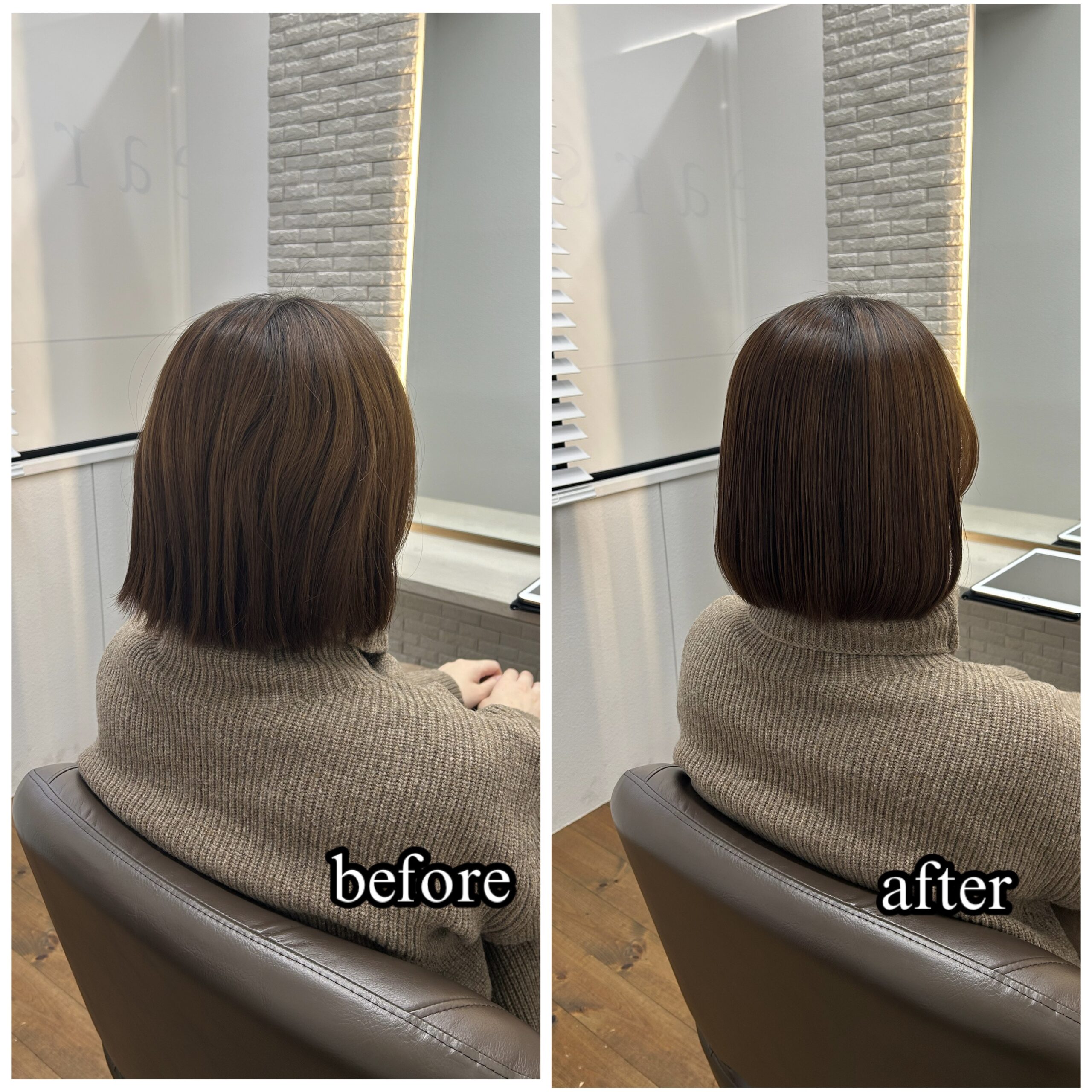 万代店のストレートエステの施術実績 ストレートエステで艶髪に dearsniigata 2025年12月17日 こちらのお客様はクセや日々のアイロンによる毛先のパサつきやダメージで絡まり、まとまりがないというのがお悩みでした😭 今回の髪の毛の悩みは薬剤の選定ミス、 髪の毛の乾燥が重なって起きていました。 そこでディアーズでは優しい薬剤を使用して やさしい施術をさせて頂きました❣ 髪の毛に栄養をたくさん入れたり、 保湿をしっかりすることで まとまりのあるサラサラ髪になりました✨ お客様からは 「まとまりもでて嬉しいです💓」 と喜んで頂けました!