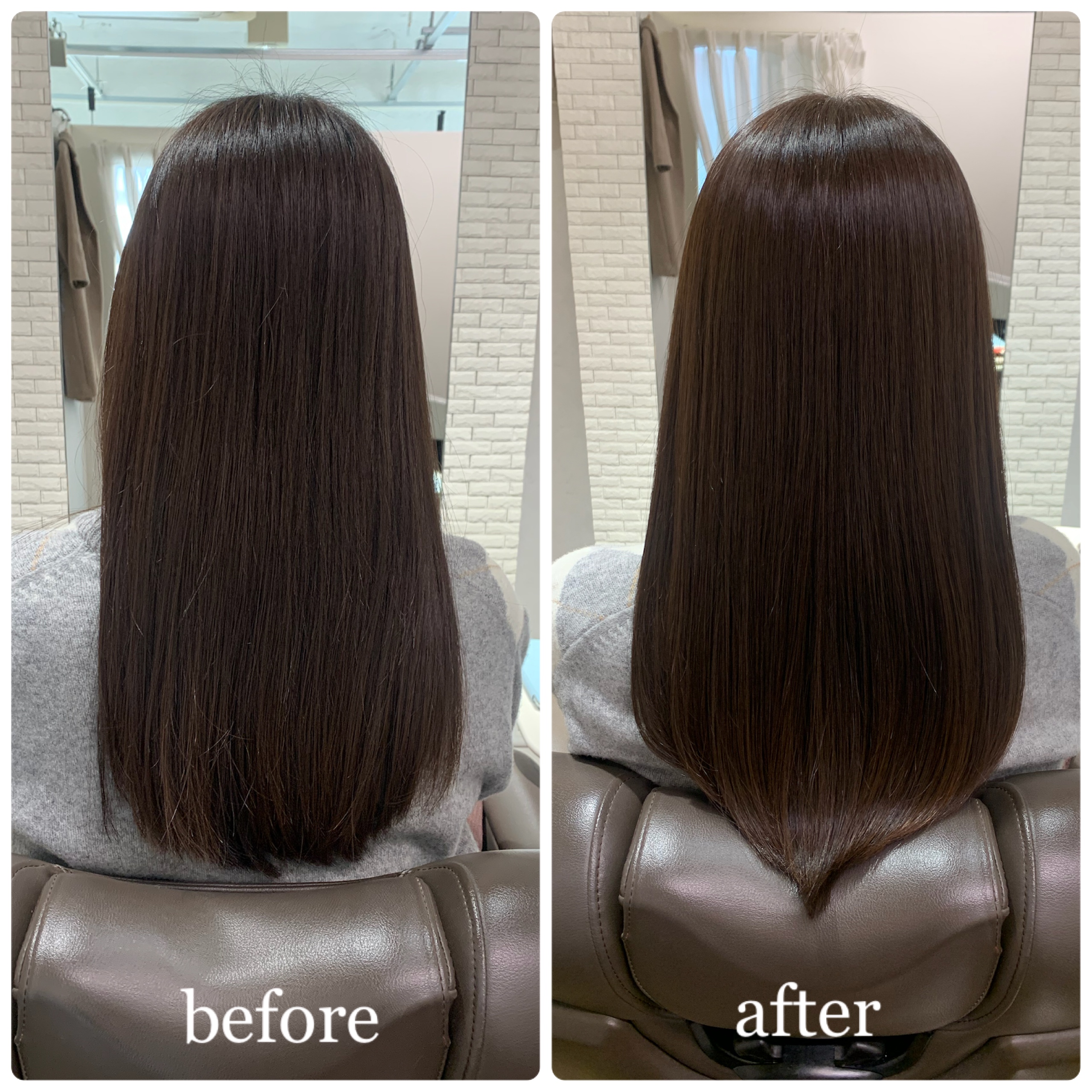 新潟店のカラーエステの施術実績 カラーエステで艶々になりました♪ dearsniigata 2025年12月18日 こちらのお客様はカラーを繰り返し、毛先のパサつきやダメージで絡まり、まとまりがないというのがお悩みでした😭 今回の髪の毛の悩みは薬剤の選定ミス、 髪の毛の乾燥が重なって起きていました💦 そこでディアーズでは優しい薬剤を使用して やさしい施術をさせて頂きました☺️ 髪の毛に栄養をたくさん入れたり、 保湿をしっかりすることで まとまりのあるサラサラ髪になりました✨ お客様からは 「艶々になりました❣️」 と喜んで頂けました!