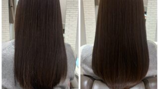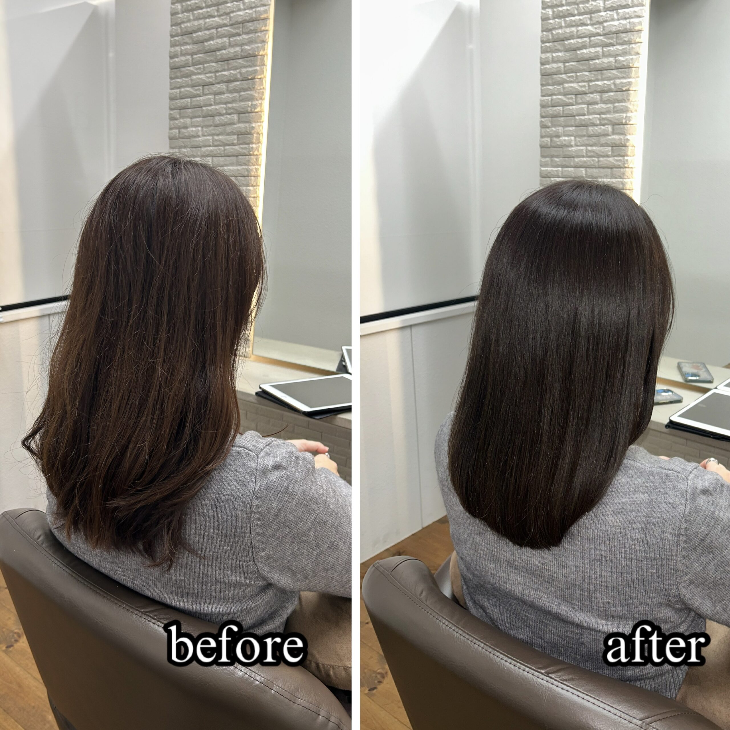 万代店のカラーエステの施術実績 カラーエステで艶髪に dearsniigata 2025年12月19日 こちらのお客様はクセや日々のアイロンによる毛先のパサつきやダメージで絡まり、まとまりがないというのがお悩みでした😭 今回の髪の毛の悩みは薬剤の選定ミス、 髪の毛の乾燥が重なって起きていました。 そこでディアーズでは優しい薬剤を使用して やさしい施術をさせて頂きました❣ 髪の毛に栄養をたくさん入れたり、 保湿をしっかりすることで まとまりのあるサラサラ髪になりました✨ お客様からは 「まとまりもでて嬉しいです💓」 と喜んで頂けました!