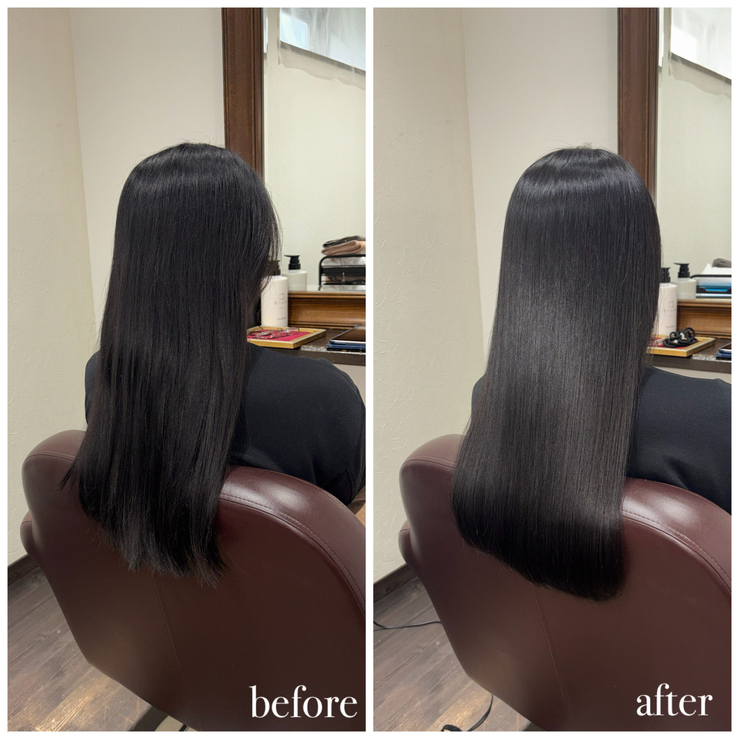 新潟店のストレートエステの施術実績 ストレートエステでサラサラに dearsniigata 2026年1月17日 こちらのお客様はカラーや日々のアイロンによる毛先のパサつきやダメージで絡まり、まとまりがないというのがお悩みでした😭 今回の髪の毛の悩みは薬剤の選定ミス、 髪の毛の乾燥が重なって起きていました。 そこでディアーズでは優しい薬剤を使用して やさしい施術をさせて頂きました❣ 髪の毛に栄養をたくさん入れたり、 保湿をしっかりすることで まとまりのあるサラサラ髪になりました✨ お客様からは 「まとまりもでて嬉しいです💓」 と喜んで頂けました!