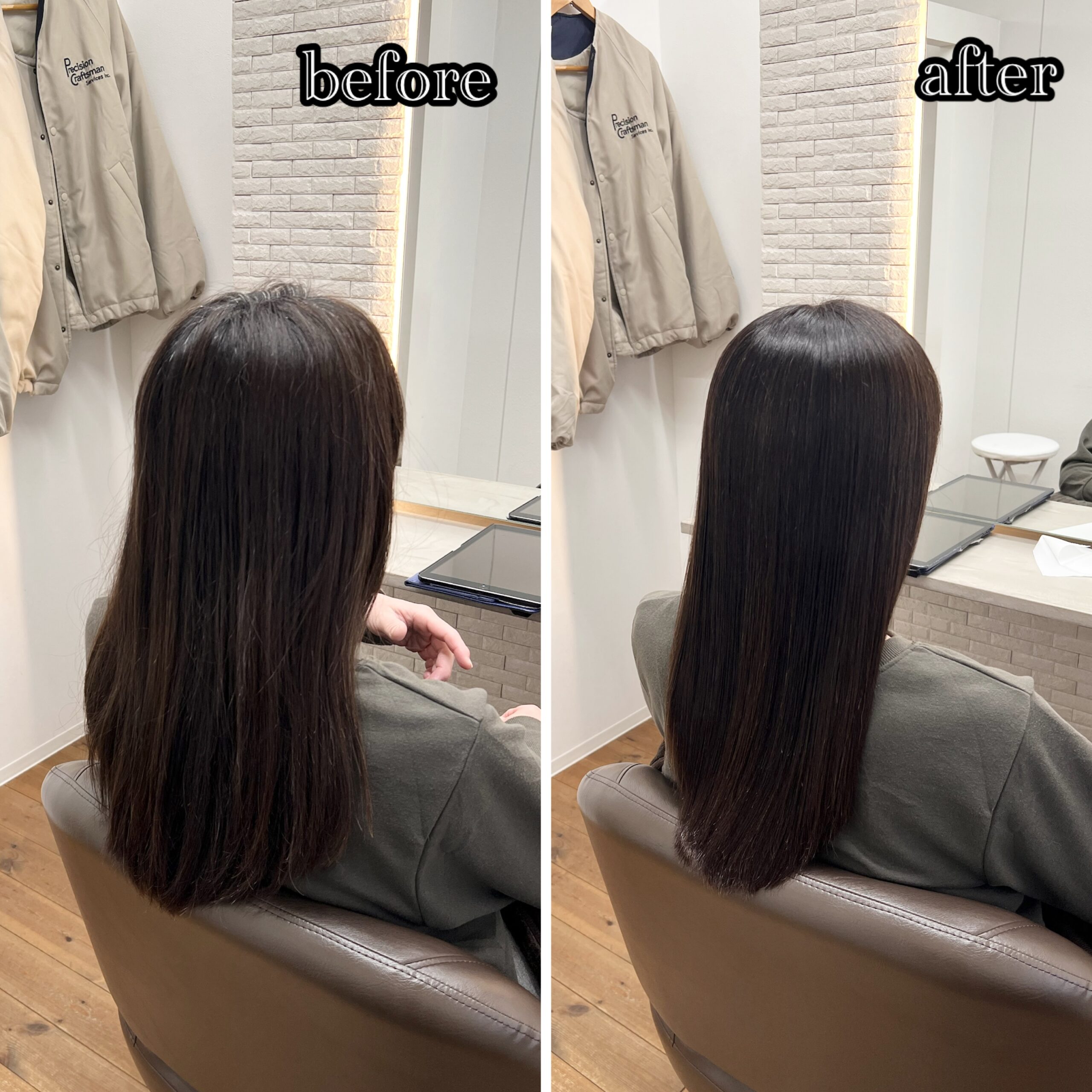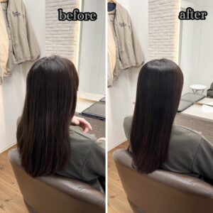 新潟店のブログ カラーエステでサラツヤに dearsniigata 2026年1月19日 こちらのお客様はカラーや 縮毛矯正を繰り返し、 毛先のパサつきやダメージ まとまりがないというのがお悩みでした。 今回の髪の毛の悩みは薬剤の選定ミス、髪の毛の乾燥が重なって起きていました。 そこでディアーズでは優しい薬剤を使用して やさしい施術をさせて頂きました。 髪の毛に栄養をたくさん入れたり、 保湿をしっかりすることで まとまりのあるツヤ髪になりました。 お客様からは 「まとまりが出て嬉しいです」 と喜んで頂けました!